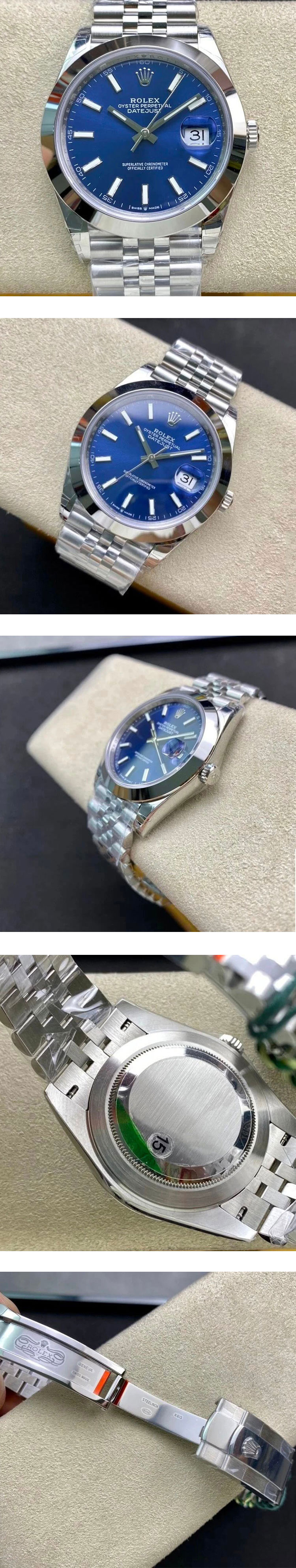 文字盘: ブルー文字盤、デイト拡大率2.5倍、ROLEX王冠ルーレット刻印ある