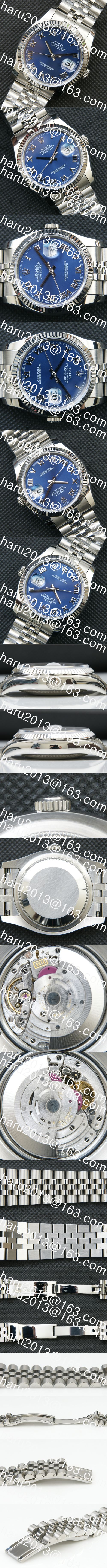 文字盤:ブルー文字盤、ローマ字、ROLEX&王冠のルーレット刻印