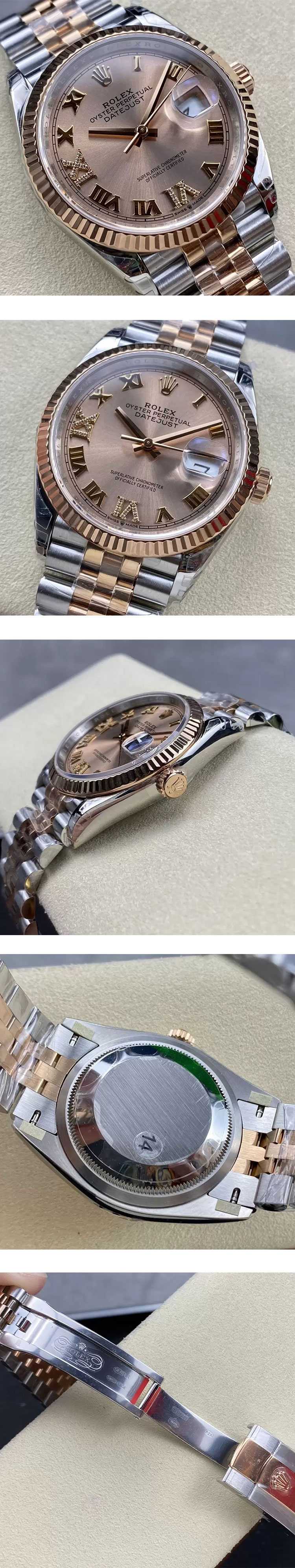 文字盤: ピンクローマンダイヤル、デイト表示、クロノメーター、ルーレット刻印(ROLEX&王冠)