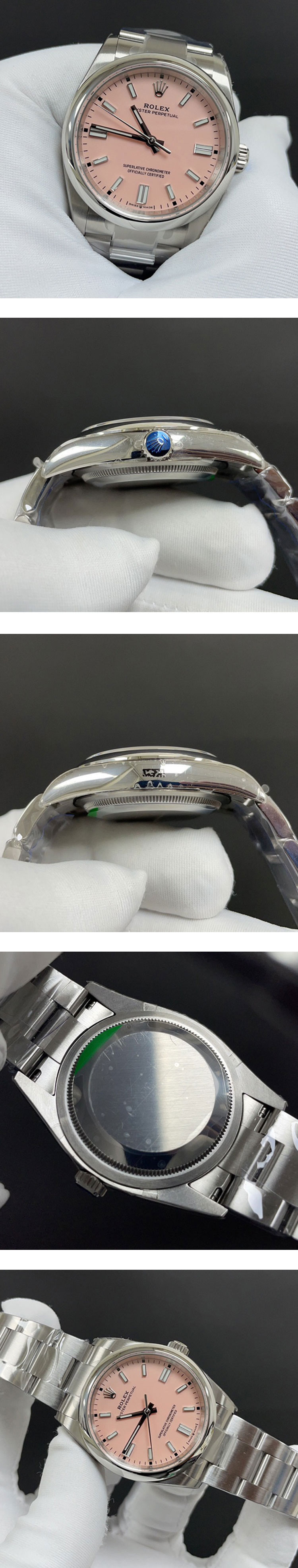 文字盤: キャンディピンク文字盤、ルミナスインデックス、ルーレット刻印(ROLEX&王冠)