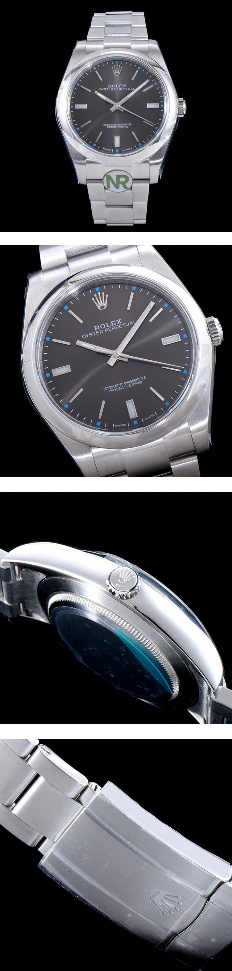 文字盤: ダークロジウム文字盤、ルミナスインデックス、ルーレット刻印(ROLEX&王冠)