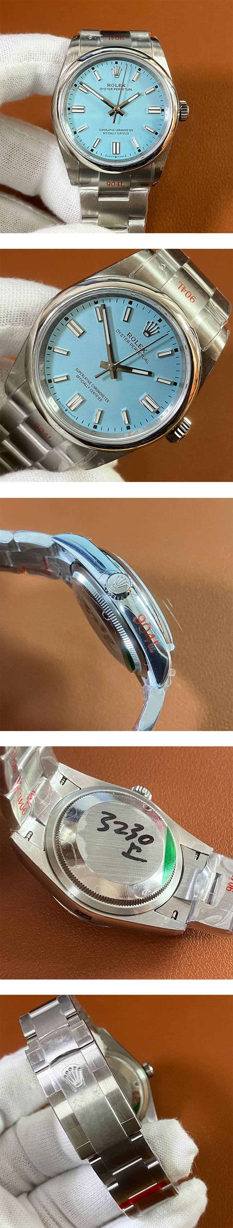 文字盤: ターコイズブルーダイヤル、ルーレット刻印(ROLEX&王冠)、スーパールミナスインデックス(夜光)
