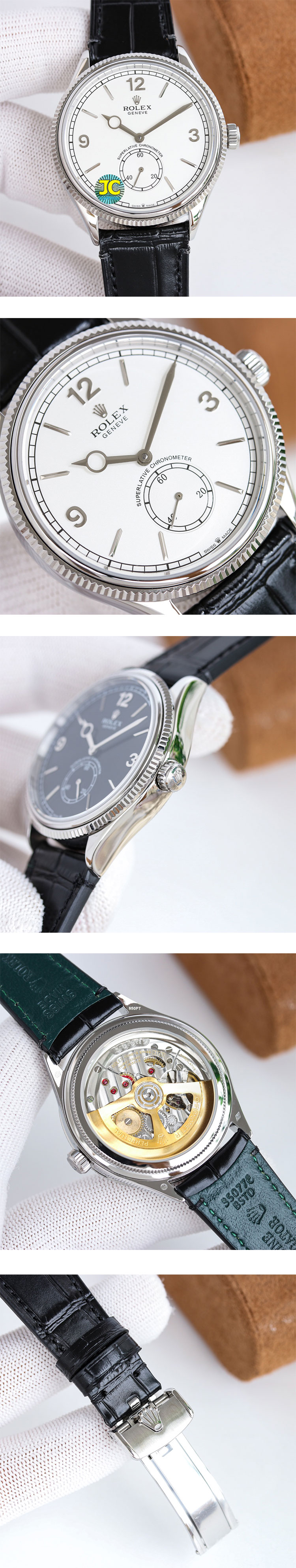 文字盤: ホワイトダイヤル、6時位置時刻秒針、ルーレット刻印(ROLEX&王冠)