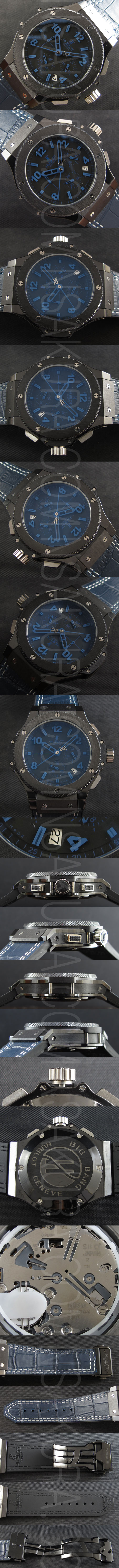 ダイヤル:ブラック文字盤、ブルーインデックス、5時位置カレンダー表示