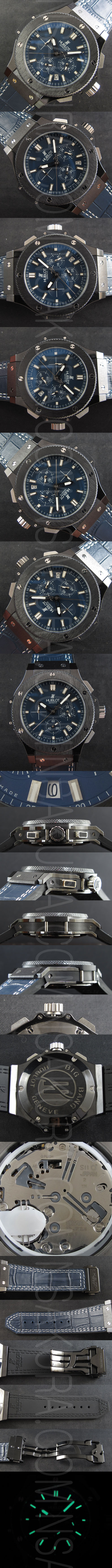 ダイヤル:ブルー文字盤、ホワイト夜光インデックス、クロノグラフインダイヤル、5時位置カレンダー表示
