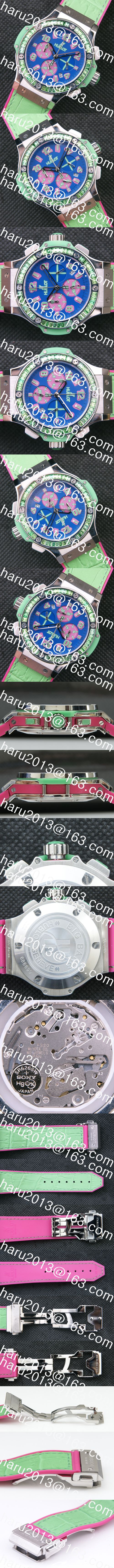 文字盤:ブルー文字盤、6時9時インダイヤル赤ピンク、5時位置デイト表示、インデックスアラビア数字(一部)