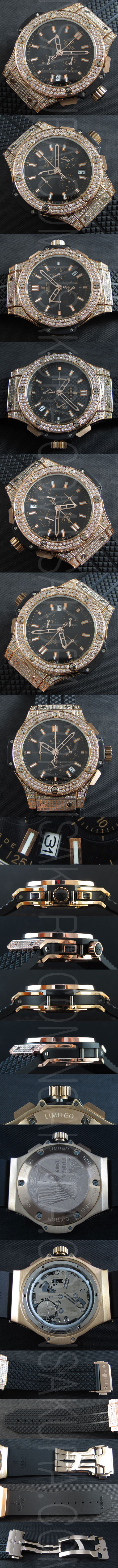文字盤:ブラック文字盤、14Kゴールドインデックス(2重夜光コーティング)、ストップウォッチインダイヤル