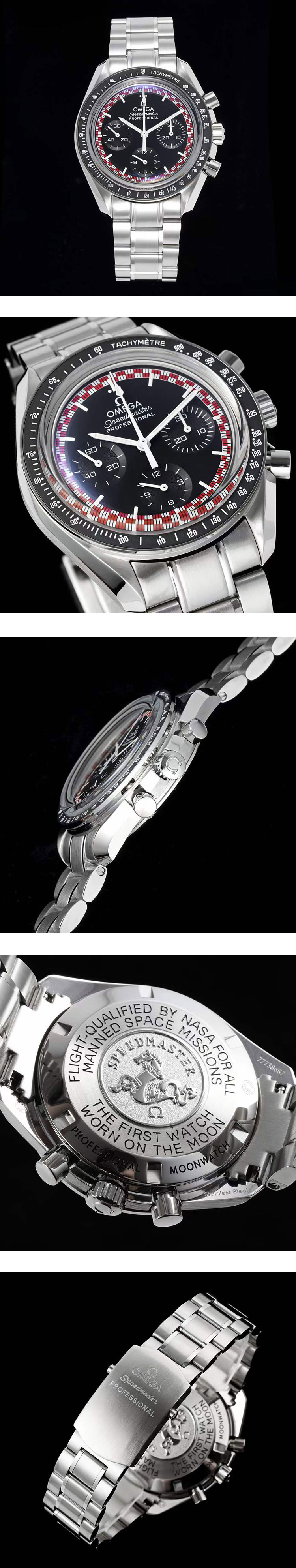文字盤: ブラック文字盤(クロノグラフ&時刻60秒秒針)、ブルー夜光インデックス