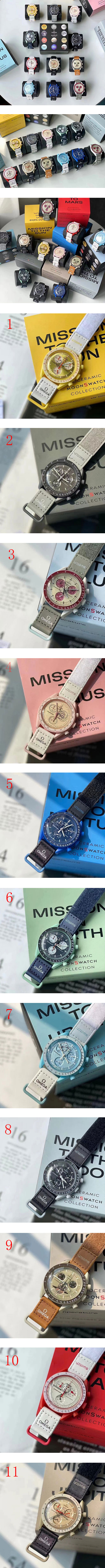オメガの「スピードマスター ムーンウォッチ」のデザインをクロノグラフのスウォッチで再現。名前もムーン“ス”ウォッチと名付けられた。太陽系の11の星をテーマにしたさまざまなカラー?デザインがラインナップされる。ケース径は42mm。