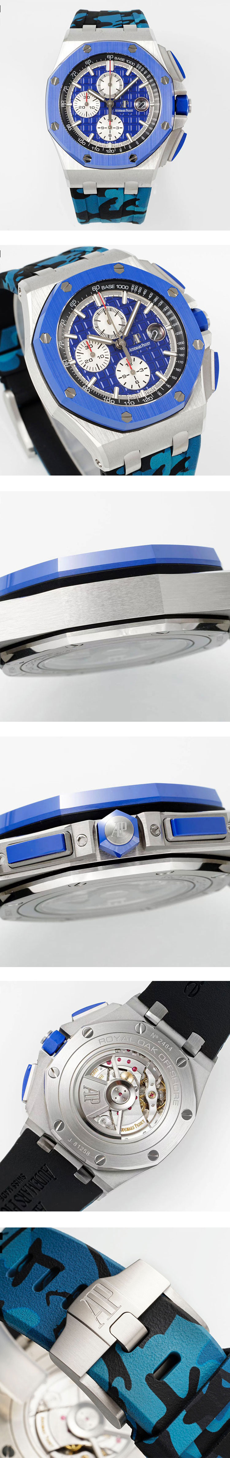 ダイヤル:ブルービスケットテクスチャー文字盤、インダイヤルホワイト、ルーレットブラック、カレンダー表示