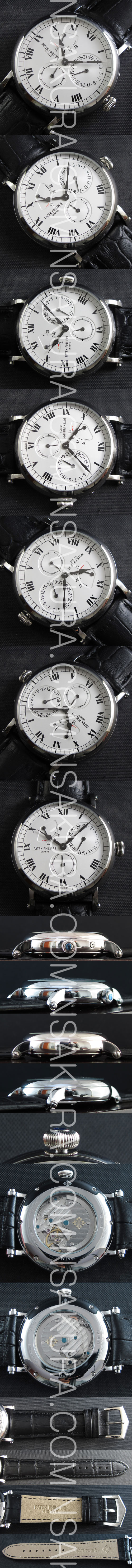 文字盤: ホワイト文字盤、10時位置パワーリザーブ、6時位置デイト表示、