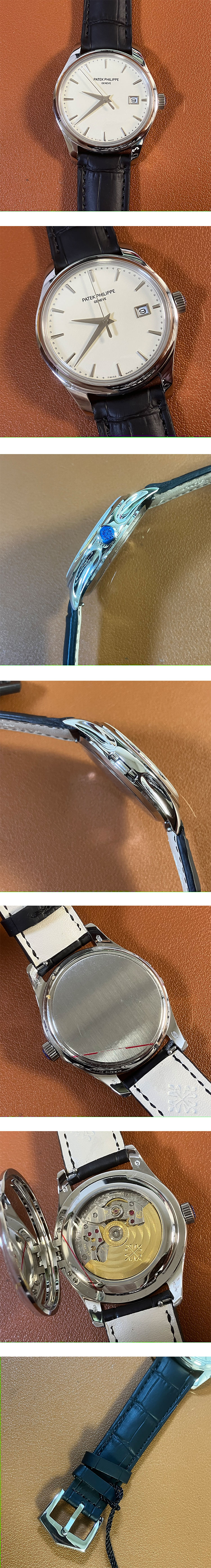 文字盤: ミルク色セラミック文字盤、3時位置カレンダー表示、18Kプラチナインデックス