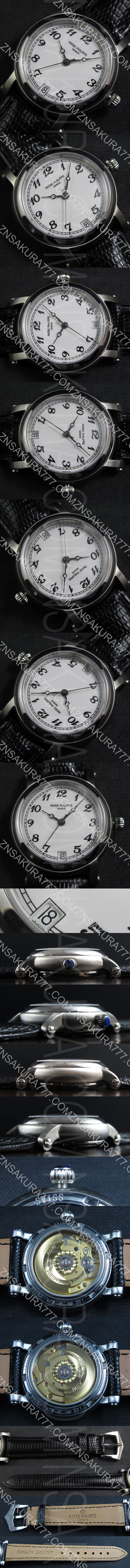 文字盤:ホワイト文字盤、アラビア数字文字盤、インデックスブラック、6時位置カレンダー表示