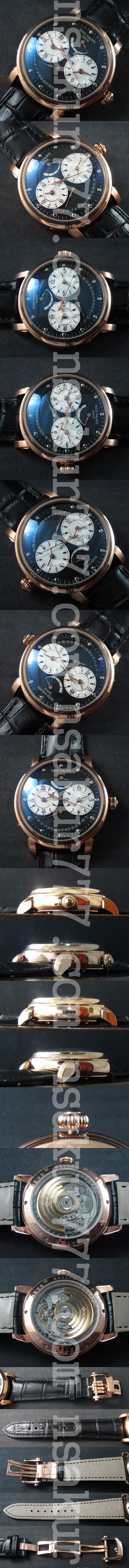 文字盤 : ダークブルーダイアル、12時位置パワー リザーブ、3時&9時位置にデュアルタイム装着、デイト表示