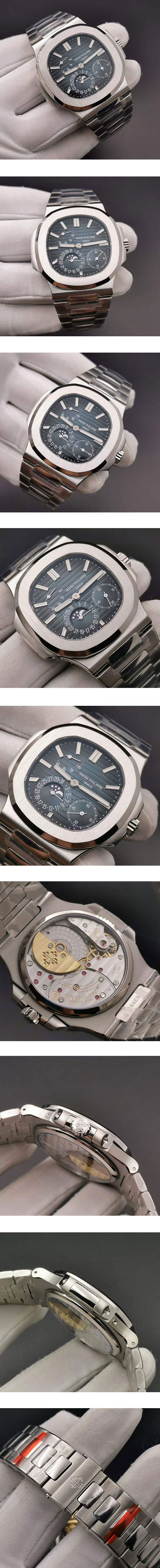文字盤: ダークブルー文字盤、4時位置時刻秒針、7時位置カレンダー&ムーンフェイズ、10時位置パワーリザーブ