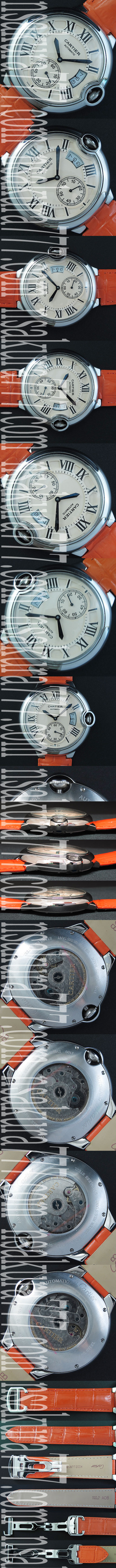 文字盤: ホワイトダイヤル、10時位置ローマ字にカルティエロゴ有り、6時位置秒針、3時位置デイト表示