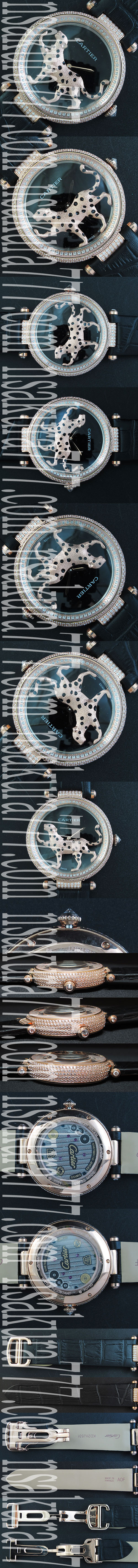 文字盤:ブラック文字盤、18Kピンクゴールドインデックス、18Kピンクゴールドハナヒョウ