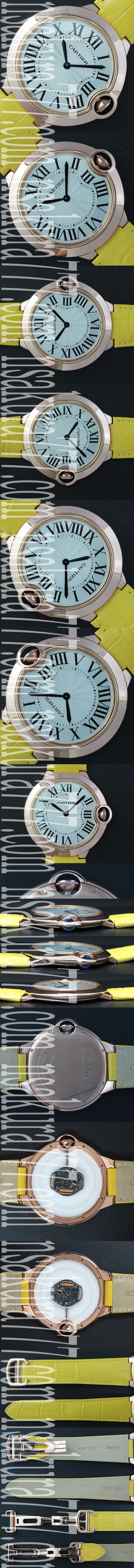 文字盤:ホワイト文字盤、ローマ数字インデックス、クロノメーター、7字位置ローマ字カルティエロゴある