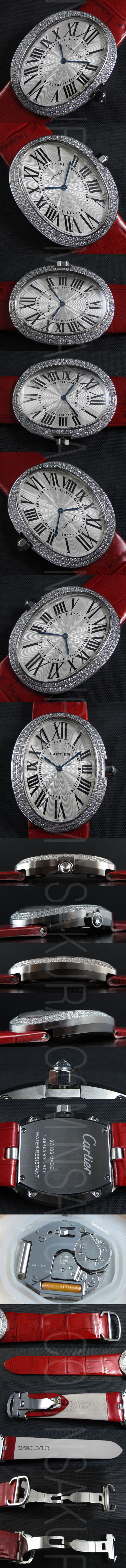 文字盤:シルバーストライプ文字盤、ローマ数字インデックス、7時数字カルティエロゴがある