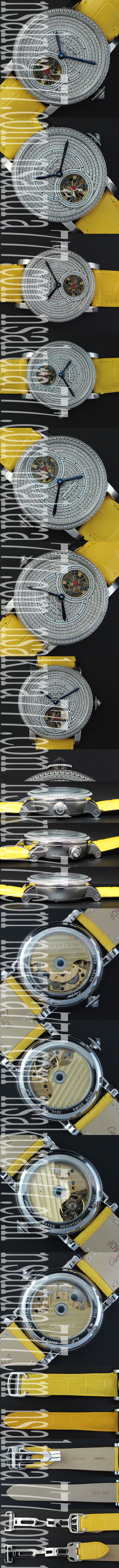 文字盤:6時位置トゥールビヨン(ダミー)表示、全面ダイヤ文字盤、分針、時針
