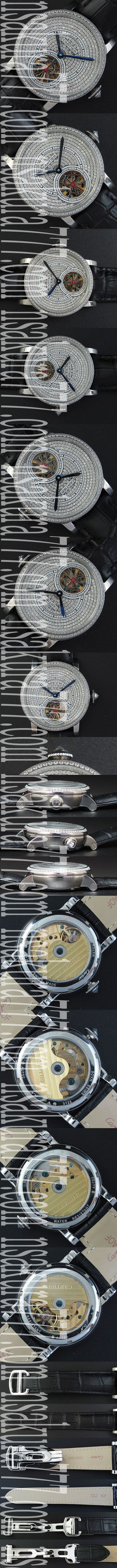 ダイヤル:全面ダイヤ文字盤、6時位置トゥールビヨン(ダミー)、ブルー分針、ブルー時針