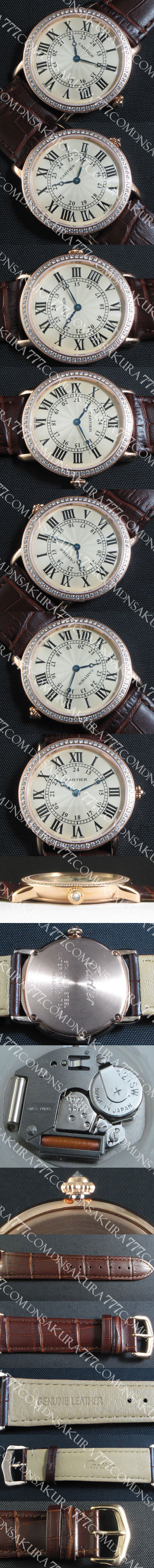 ベルト: 高級ブラウン革バンド(ピンクゴールドピンバックル搭載)