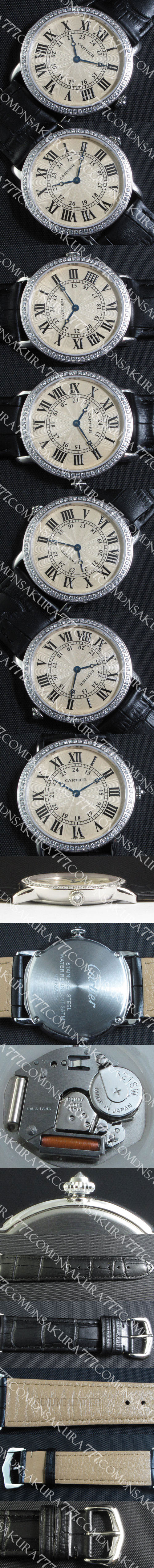 文字盤: ローマ数字インデックス、ブルー分針時針、7時ローマ数字にカルティエロゴがある
