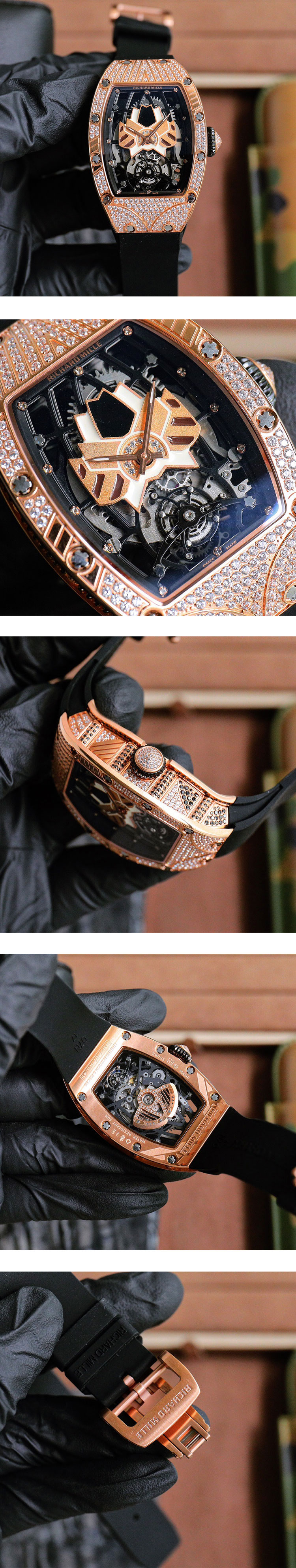 素 材: 316ステンレス14Kピンクゴールドコーティング(人工ダイヤ埋め込み手作業入り)