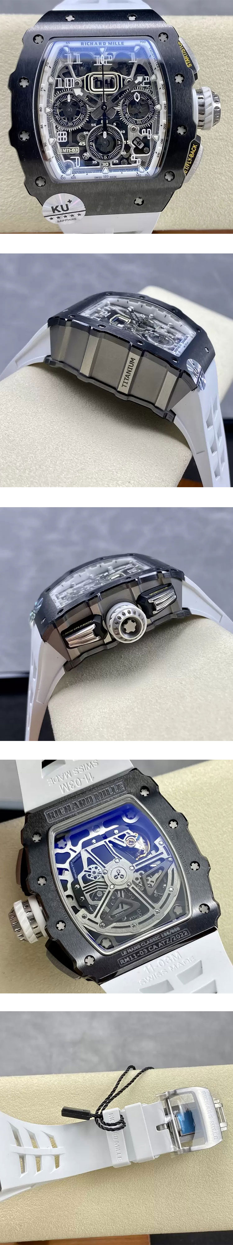 ムーブ: Cal.RMAC3搭載 毎秒8振動1時間28800振動(自動巻き)クロノグラフ(ストップウォッチ機能)完全フル稼働