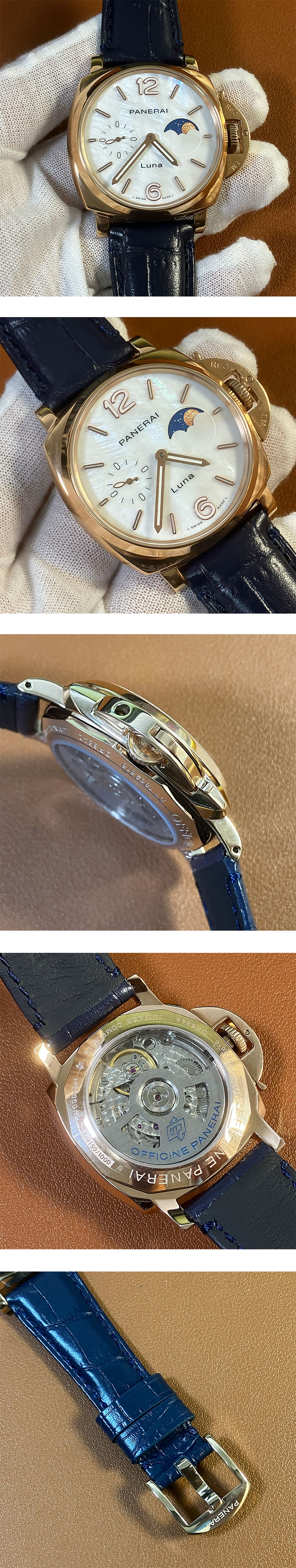 文字盤: ホワイト文字盤、9時位置時刻秒針、3時位置ムーンフェイズ表示