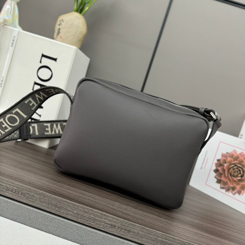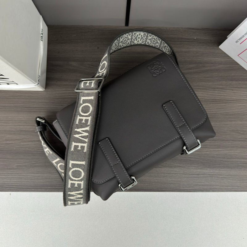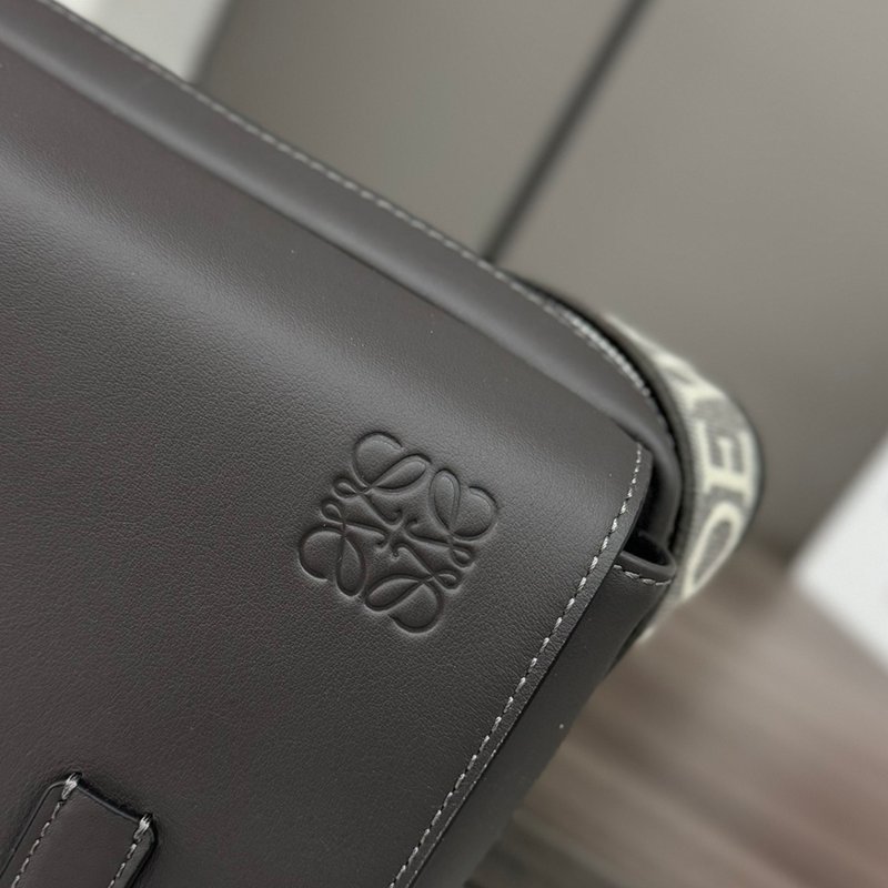 LOEWE ミリタリー メッセンジャーバッグ レザー×ジャカード メンズ 24.5×18×10.5cm