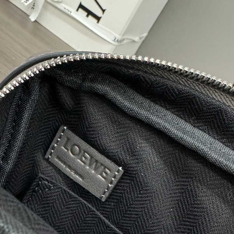 • LOEWE ミリタリー メッセンジャーバッグ レザー×ジャカード メンズ 24.5×18×10.5cm