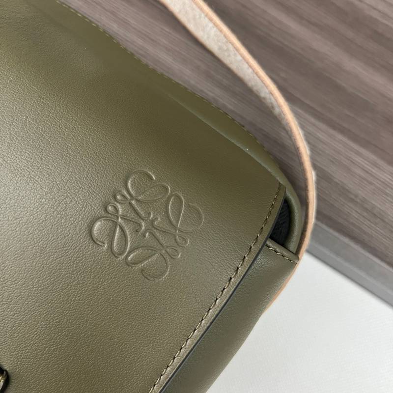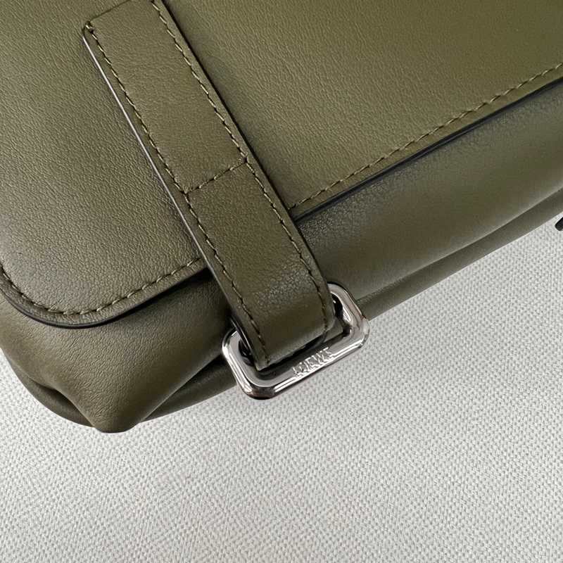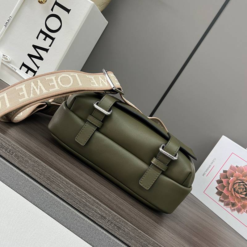 • LOEWE ミリタリー メッセンジャーバッグ レザー×ジャカード メンズ 24.5×18×10.5cm