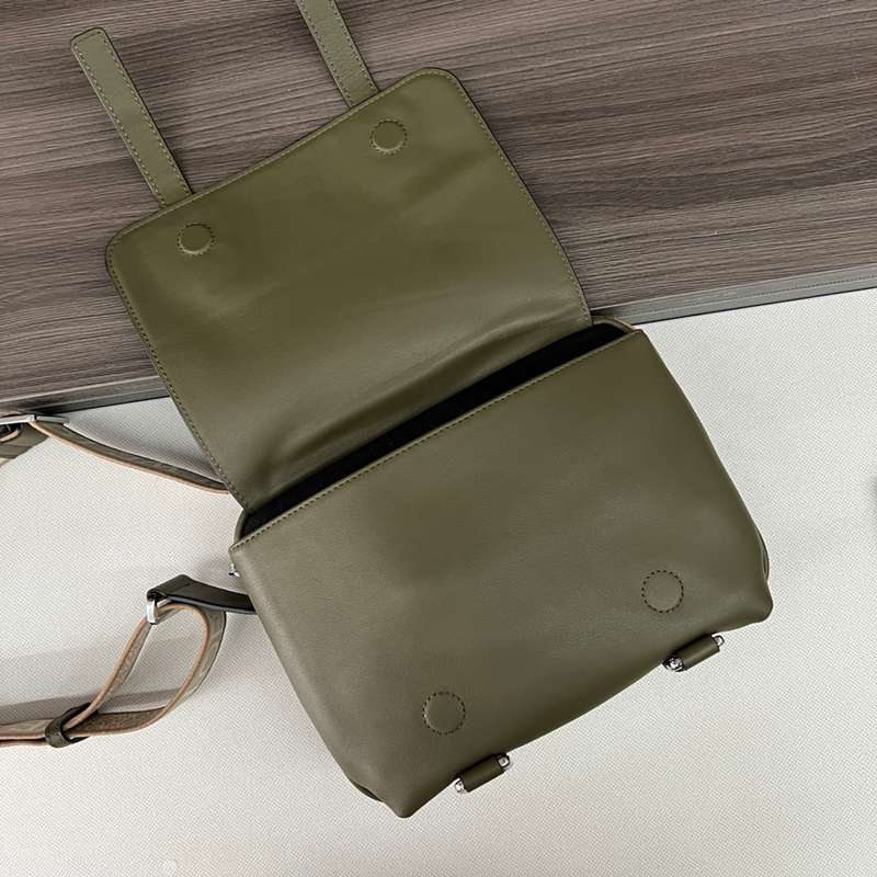 LOEWE ミリタリー メッセンジャーバッグ レザー×ジャカード メンズ 24.5×18×10.5cm