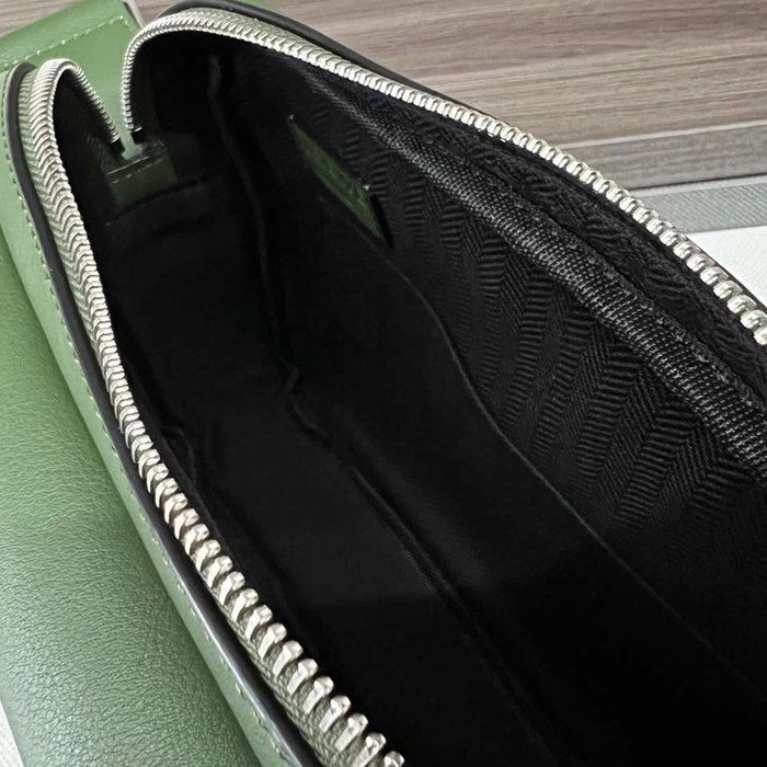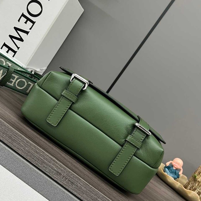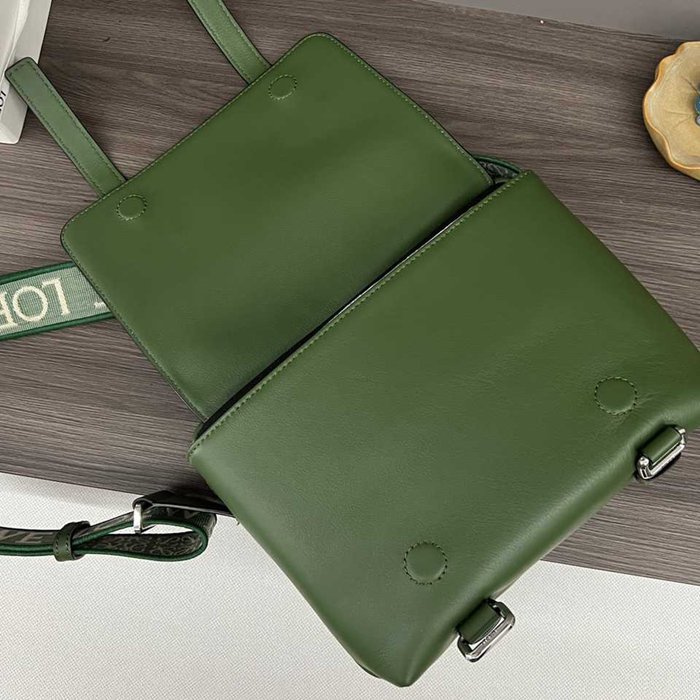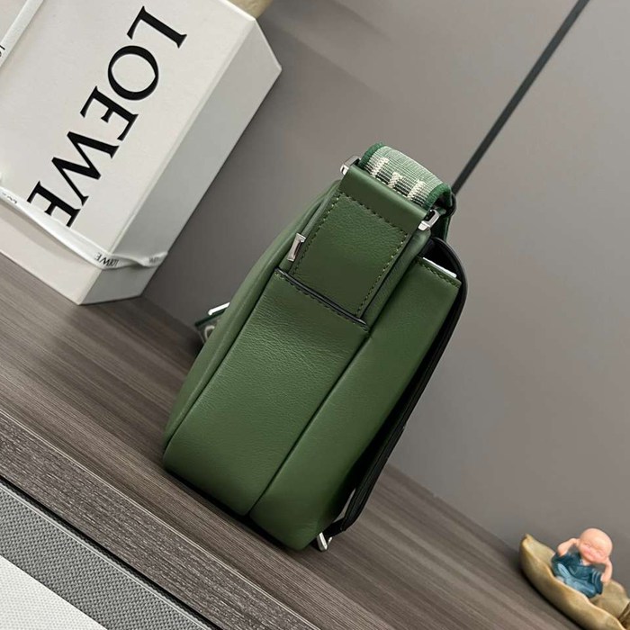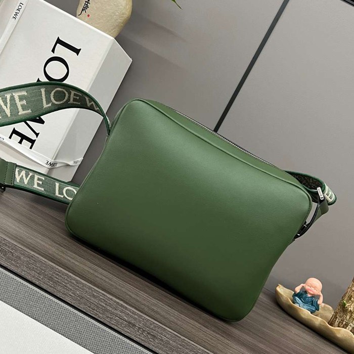 LOEWE ミリタリー メッセンジャーバッグ レザー×ジャカード メンズ 24.5×18×10.5cm