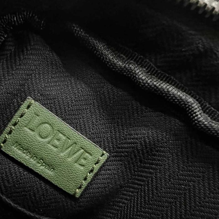 • LOEWE ミリタリー メッセンジャーバッグ レザー×ジャカード メンズ 24.5×18×10.5cm
