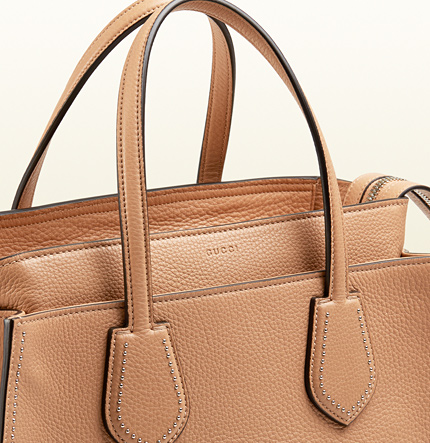 crafted in our soft, natural grain leather and meticulously trimmed in micro studs, the mid-size gucci ramble tote is a style all to itself. Hand-constructed with the utmost precision, this elegant handbag is playful, modern, and unmistakably original.