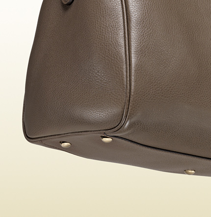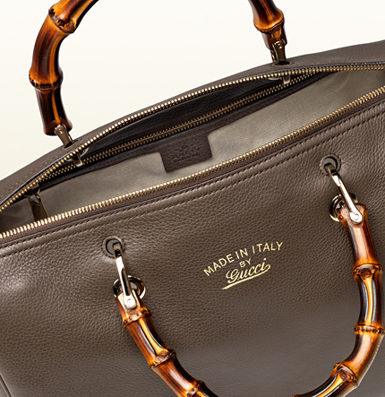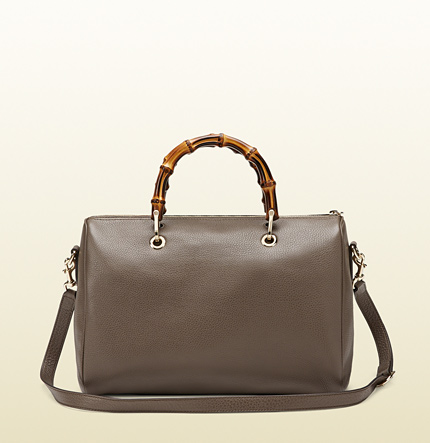 This gucci boston bag made of leather light fine gold hardware natural cotton linen lining embossed gucci trademark medium size: W33cm x H22.5cm x D18cm Made in Italy double bamboo handles with 10cm drop detachable and adjustable leather shoulder strap with 43cm drop top zip closure interior zip and smart phone pockets protective metal feet