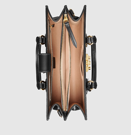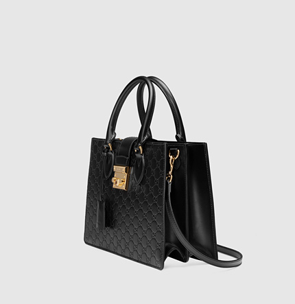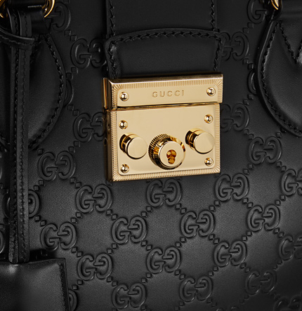 Gucci Padlock Handle Bag 428207 Black, this small size top handle bag has our key lock closure pulled straight from the archives, the key is placed in a leather key case that loops around handle. Made in our embossed Gucci Signature leather.