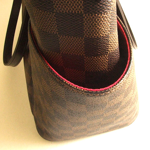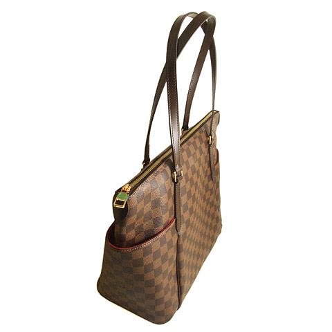 The ultimate city tote in Damier Ebène canvas with pockets galore. Magazines, tickets, sunglasses are all easily within grasp, while the bag itself is a comfortable fit for any shoulder. ( width x height x depth ) 47 x 34 x 21 cm - Comfortable flat shoulder handles - Wide zipper closure - Interior functionalities: 1 flat pocket, two smartphone pockets and one D-ring - Two exterior lateral pockets - Natural cowhide trimmings - Golden brass pieces