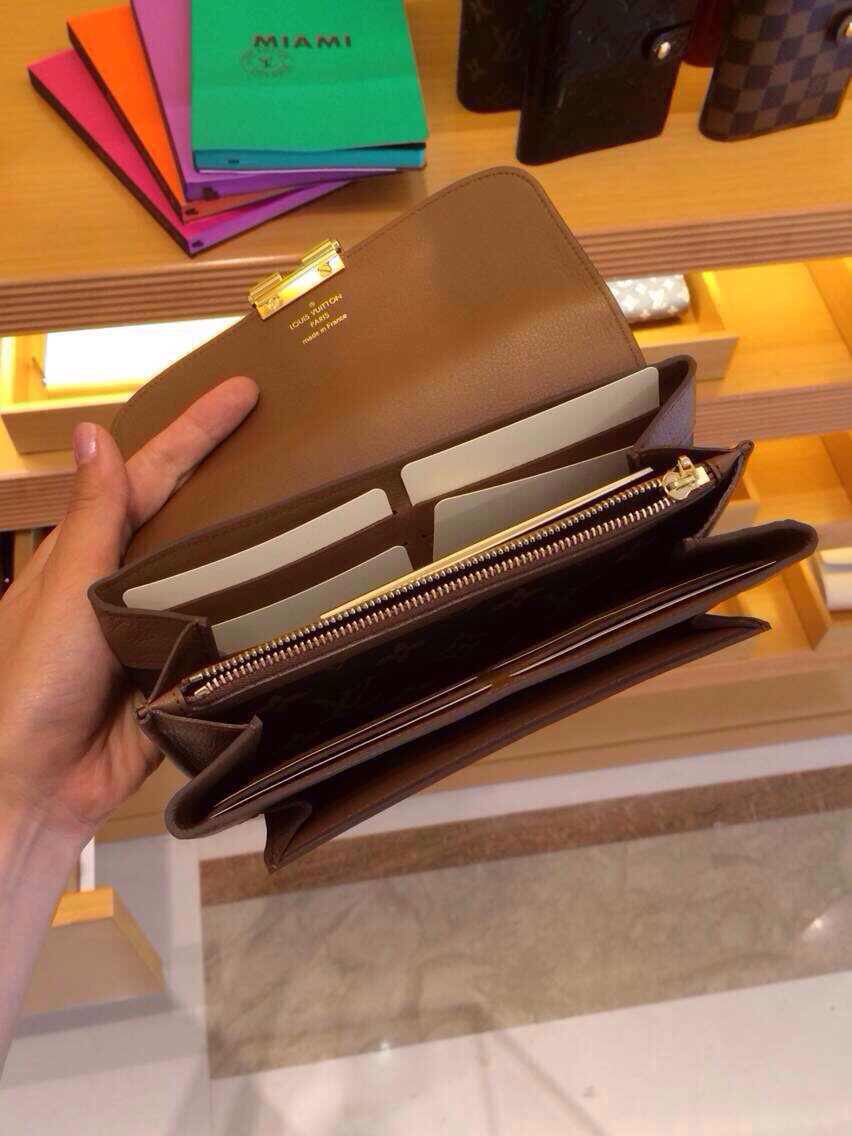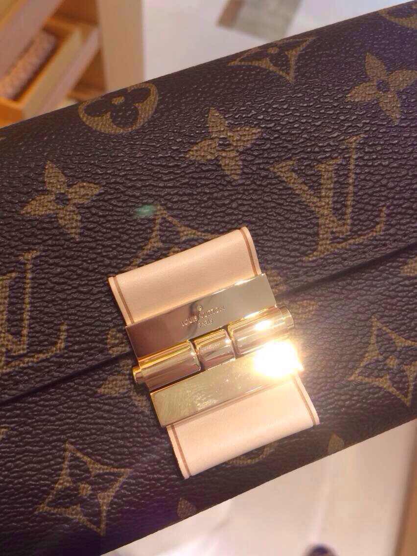 The Elysée Wallet in iconic Monogram canvas is a stylish blend of vintage-inspired details and exquisite materials. Luxurious calf leather and a classic golden brass S-lock add to its timeless charm.