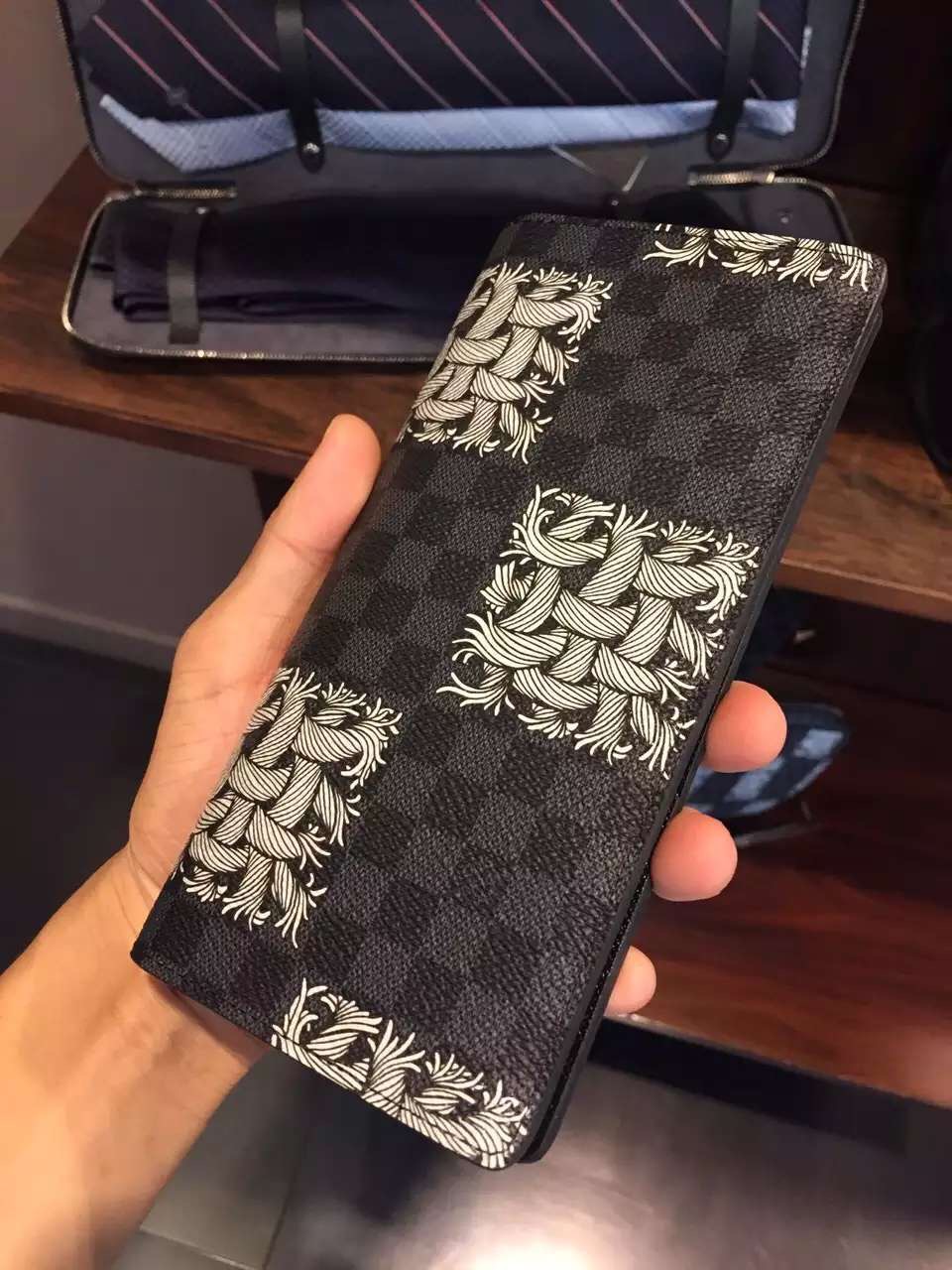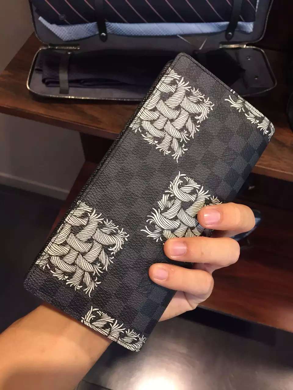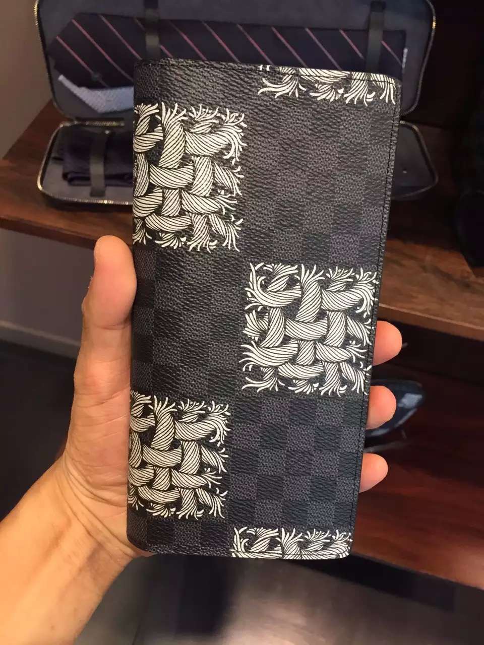 Reinterpreted with Christopher Nemeth's artistic silk-screen rope motif, the Brazza Wallet's iconic Damier Graphite canvas gets a jolt of modernity. The numerous pockets, slots, and compartments make this is an ultra-practical wallet.