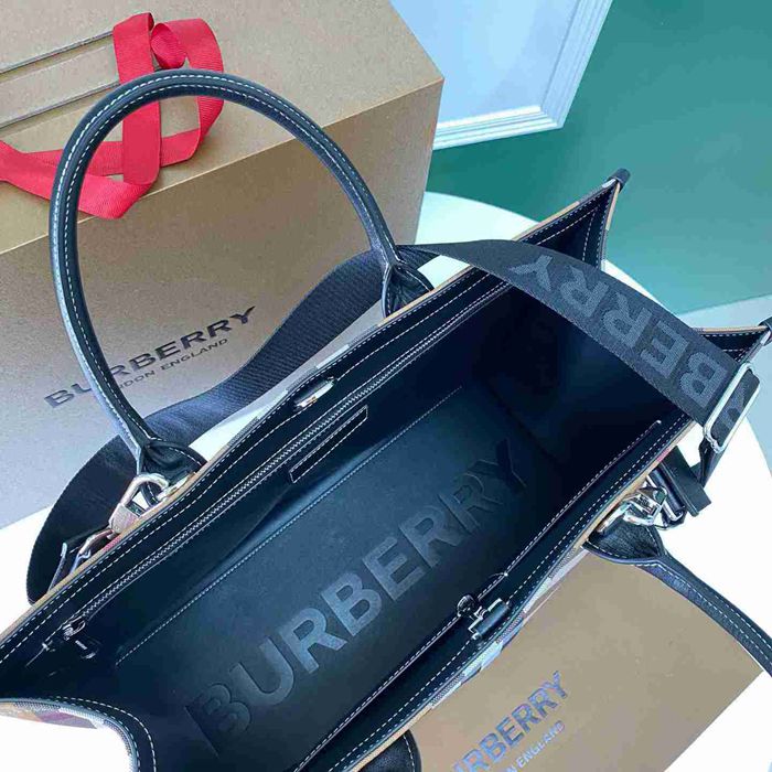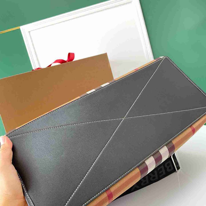 • BURBERRY トートバッグ レザー×キャンバス メンズ 45×34×19cm