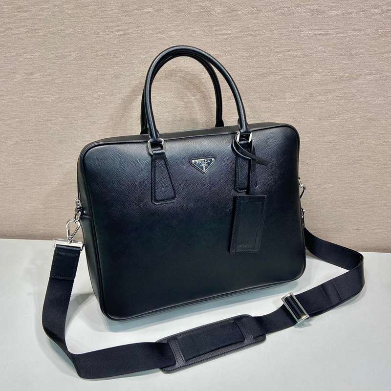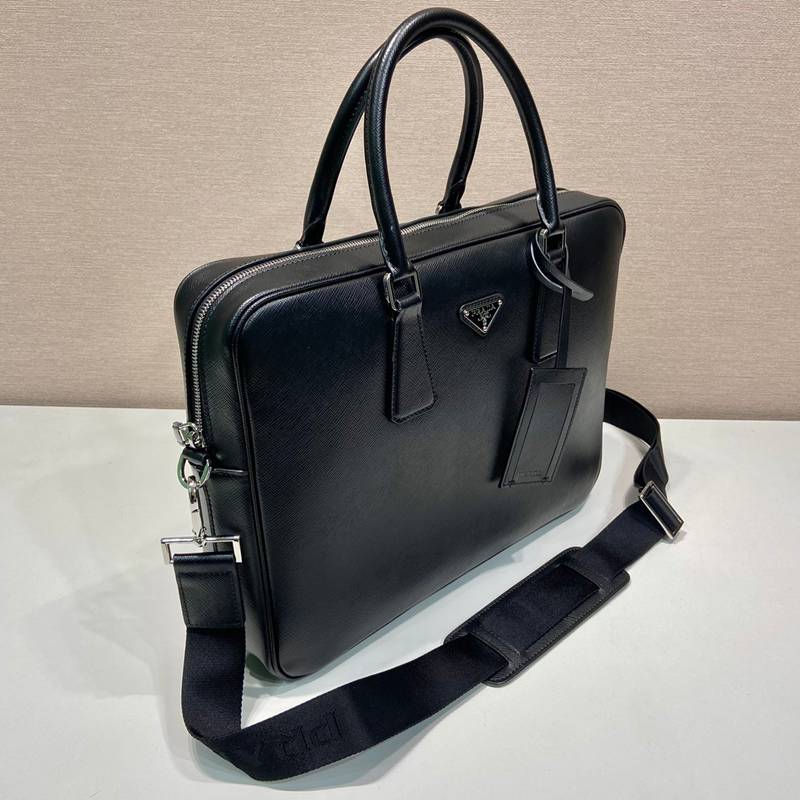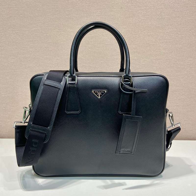 PRADA ブリーフケース クロスグレインレザー メンズ 38×29×5cm