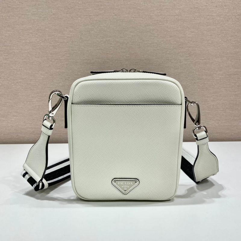 PRADA ショルダーバッグ サフィアーノレザー 刺繍テープ付き メンズ 19×16×5.5cm