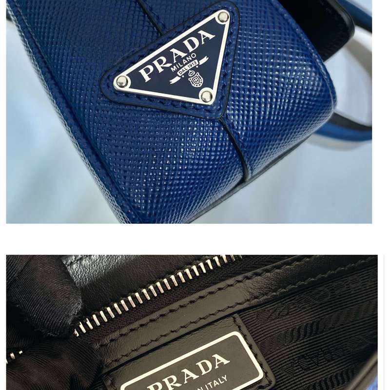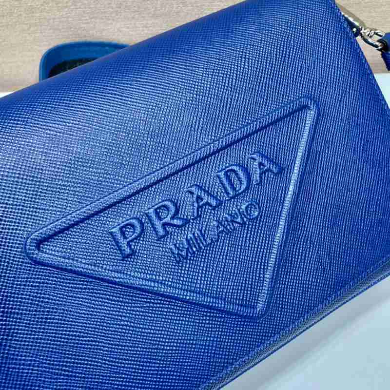 • PRADA ショルダーバッグ サフィアーノレザー 刺繍テープ付き メンズ 26×18×6.5cm
