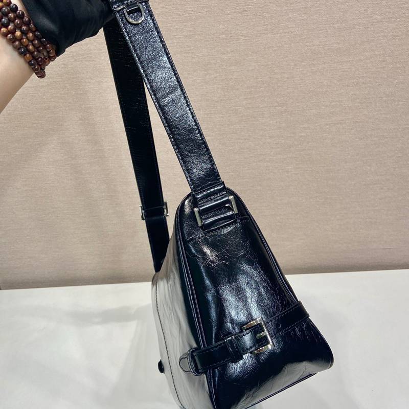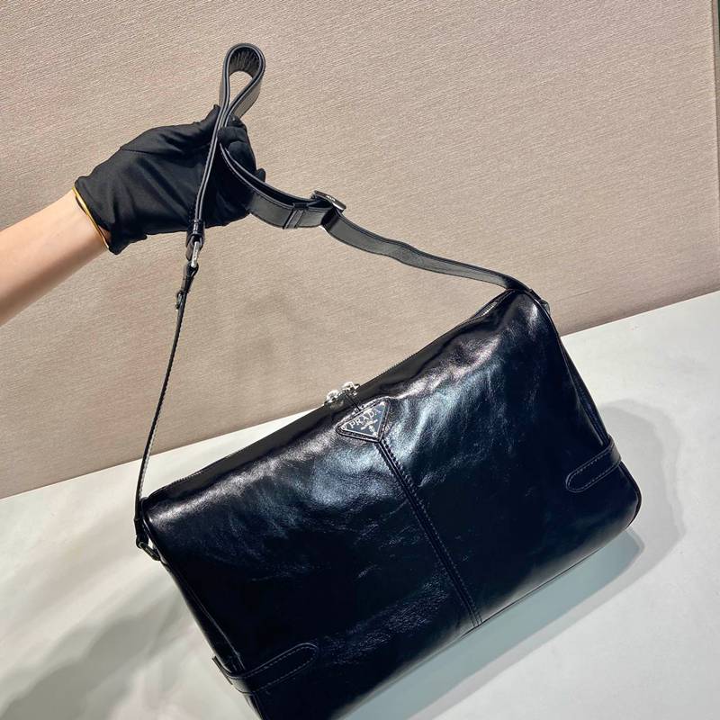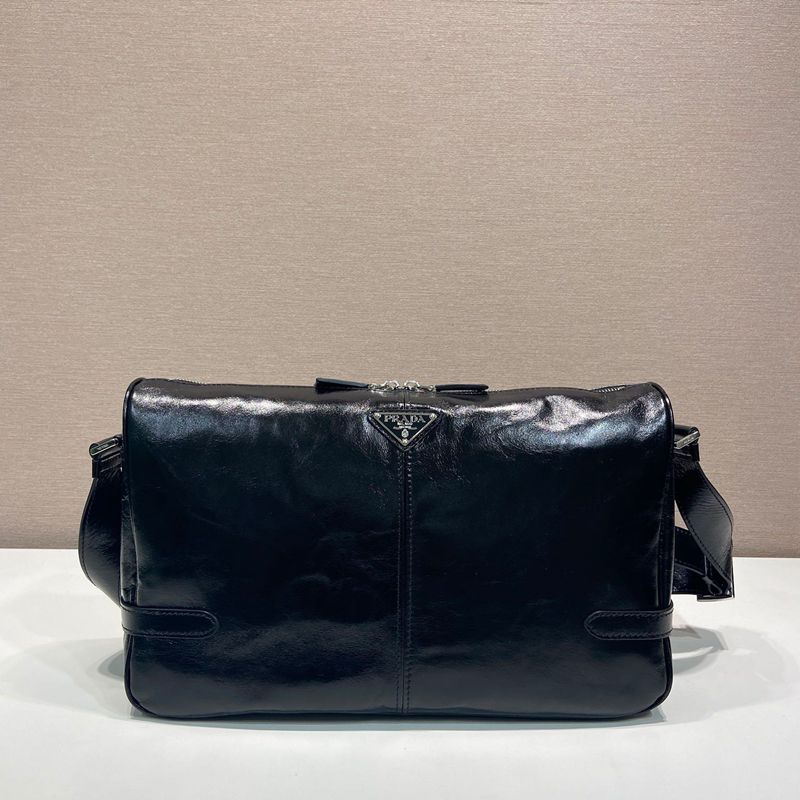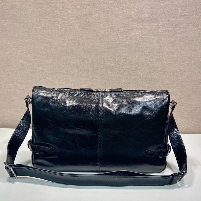 • PRADA メッセンジャーバッグ ワックスレザー メンズ 35×22×12cm