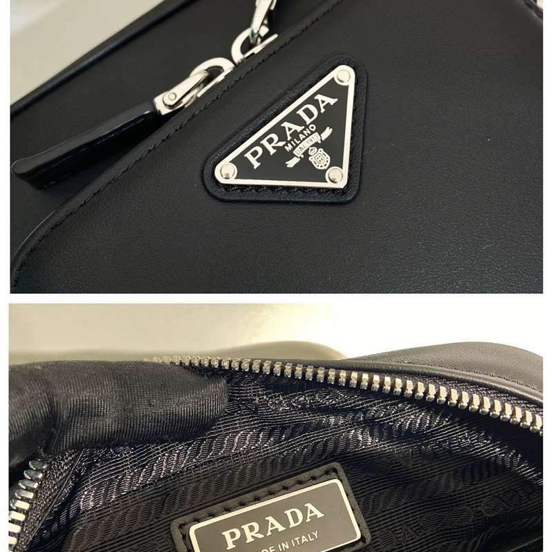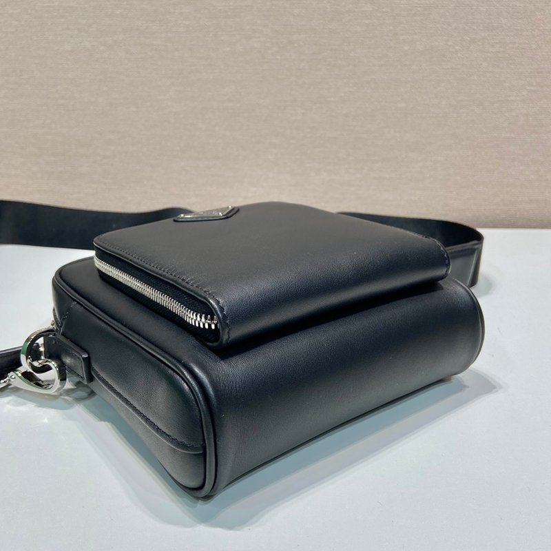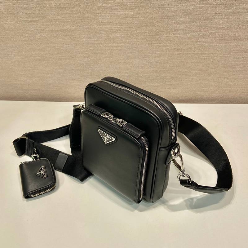• PRADA ショルダーバッグ レザー リサイクルナイロン メンズ 16×18.5×5cm