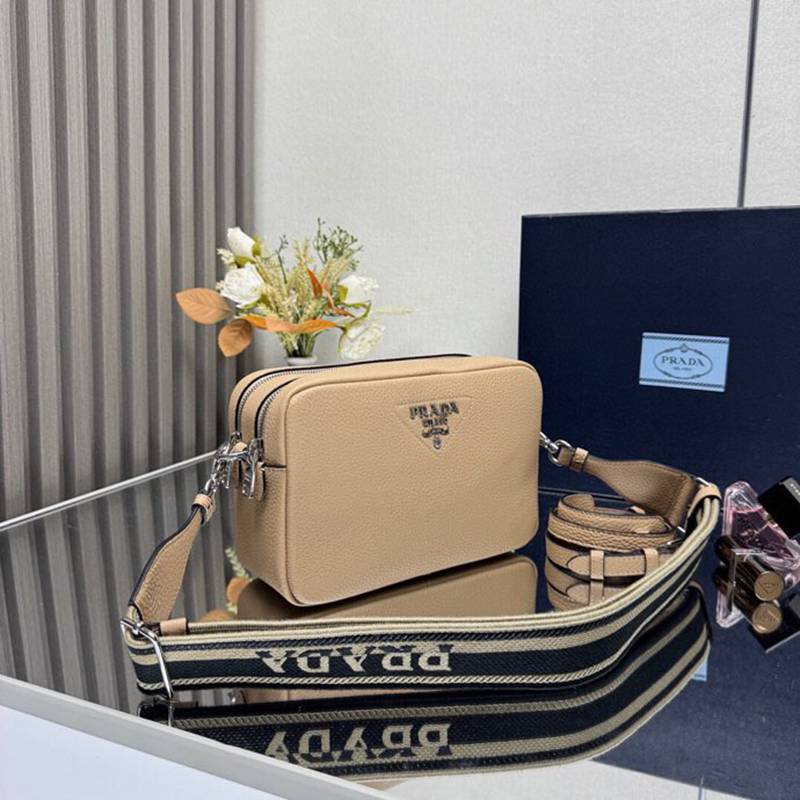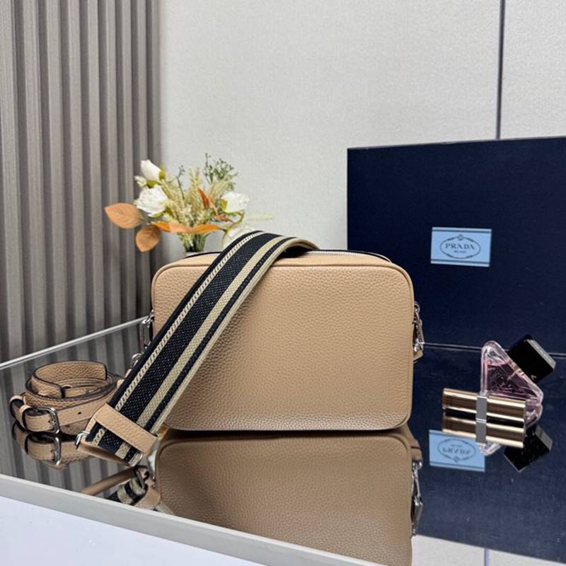 PRADA ショルダーバッグ ディアスキンレザー デュアルストラップ メンズ 22×14×8cm