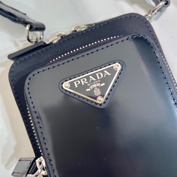 • PRADA スマホポーチ リサイクルナイロン レザー メンズ 11.5×18×4cm